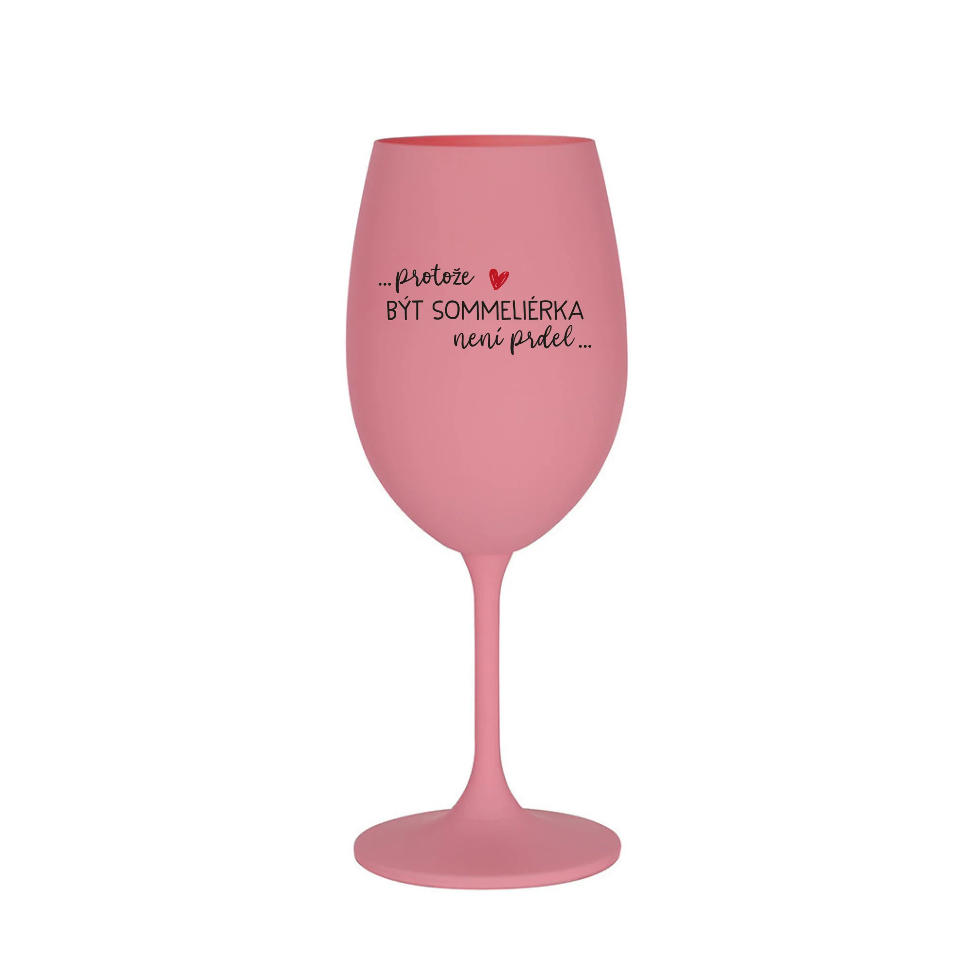 PROTOŽE BÝT SOMMELIÉRKA NENÍ PRDEL - růžová sklenice na víno 350 ml