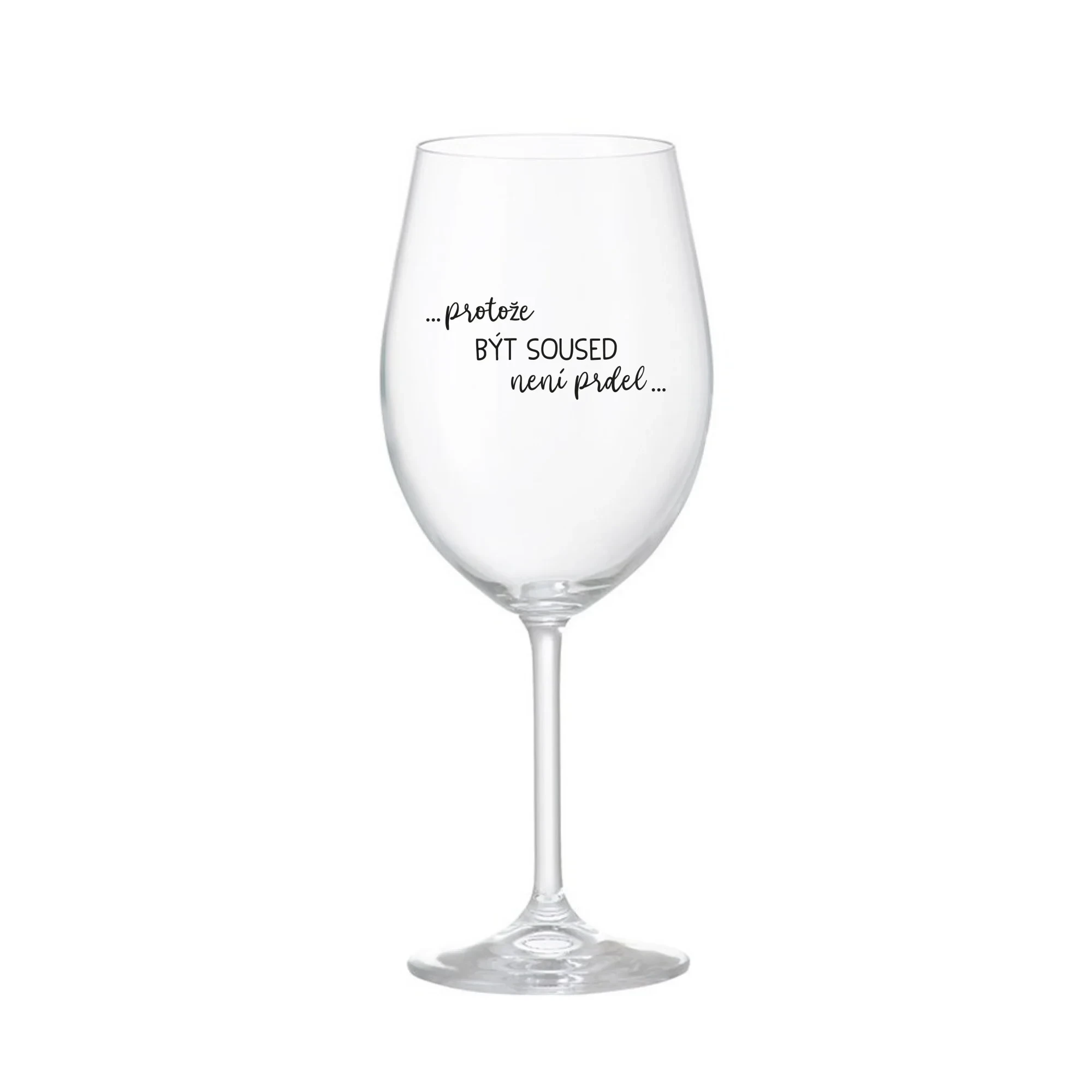 PROTOŽE BÝT SOUSED NENÍ PRDEL - čirá sklenice na víno 350 ml
