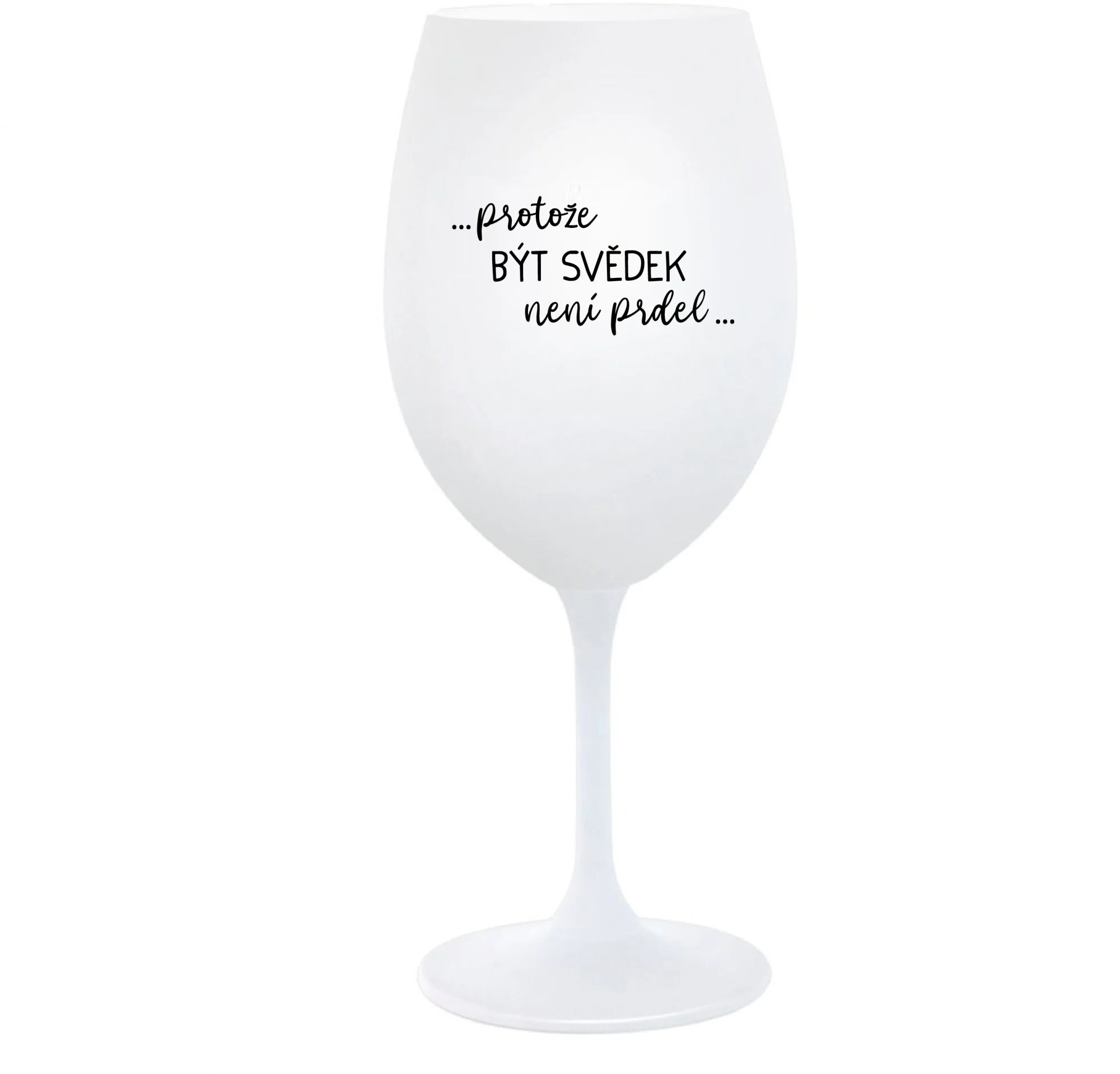 ...PROTOŽE BÝT SVĚDEK NENÍ PRDEL... - bílá sklenice na víno 350 ml