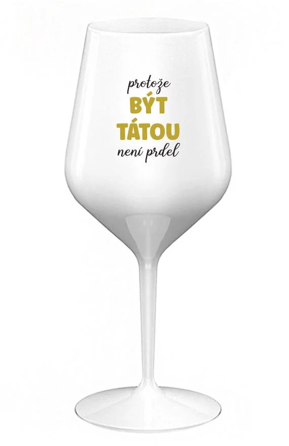 PROTOŽE BÝT TÁTOU NENÍ PRDEL - bílá nerozbitná sklenice na víno 470 ml