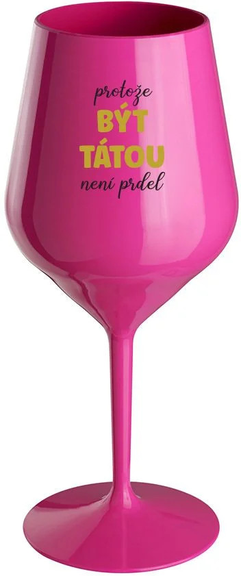 PROTOŽE BÝT TÁTOU NENÍ PRDEL - růžová nerozbitná sklenice na víno 470 ml