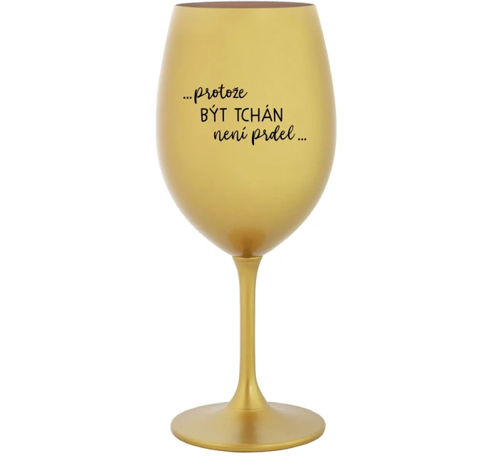 Vinná zlatá sklenice s originálním motivem ...PROTOŽE BÝT TCHÁN NENÍ PRDEL... je krásným a osobitým dárkem, které ale využijete i Vy sami třeba ve chvílích, kdy si budete chtít zpříjemnit náročný den. Tyto originální vinné sklenice jsou totiž nejen pro výjimečné události, ale i pro běžné večery, které si chcete zpříjemnit sklenkou dobrého vína. Jistě proto potěší každého milovníka vína, i toho, kdo si umí svůj život vychutnat plnými doušky.