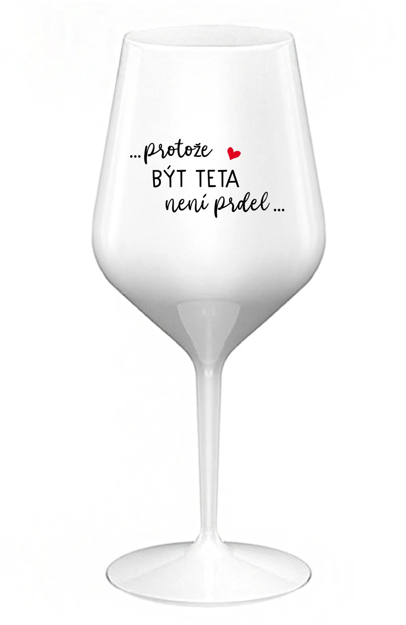 ...PROTOŽE BÝT TETA NENÍ PRDEL... - bílá nerozbitná sklenice na víno 470 ml
