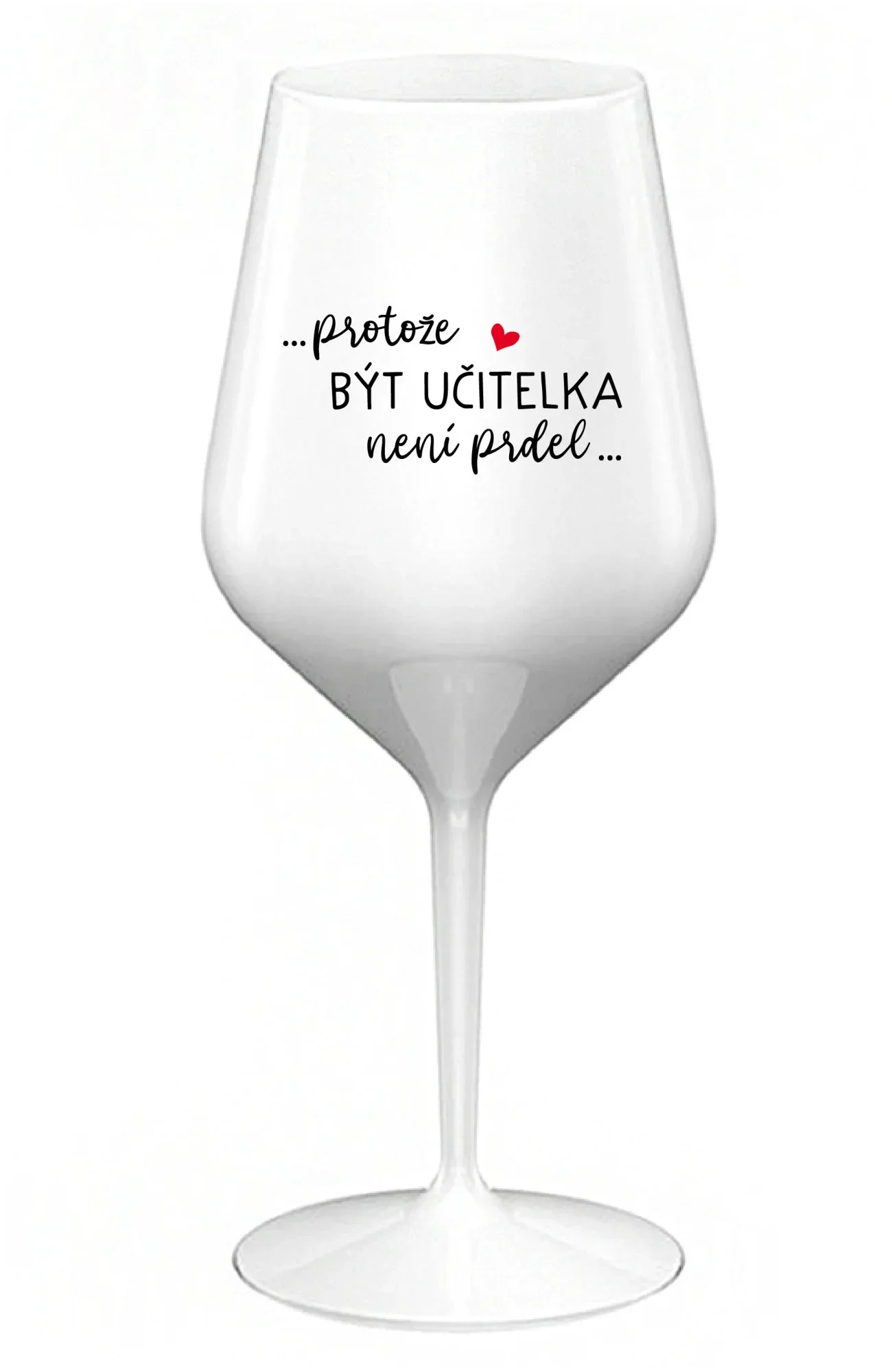 ...PROTOŽE BÝT UČITELKA NENÍ PRDEL... - bílá nerozbitná sklenice na víno 470 ml