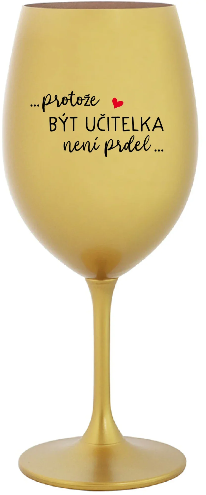 Vinná zlatá sklenice s originálním motivem ...PROTOŽE BÝT UČITELKA NENÍ PRDEL... je krásným a osobitým dárkem, které ale využijete i Vy sami třeba ve chvílích, kdy si budete chtít zpříjemnit náročný den. Tyto originální vinné sklenice jsou totiž nejen pro výjimečné události, ale i pro běžné večery, které si chcete zpříjemnit sklenkou dobrého vína. Jistě proto potěší každého milovníka vína, i toho, kdo si umí svůj život vychutnat plnými doušky.