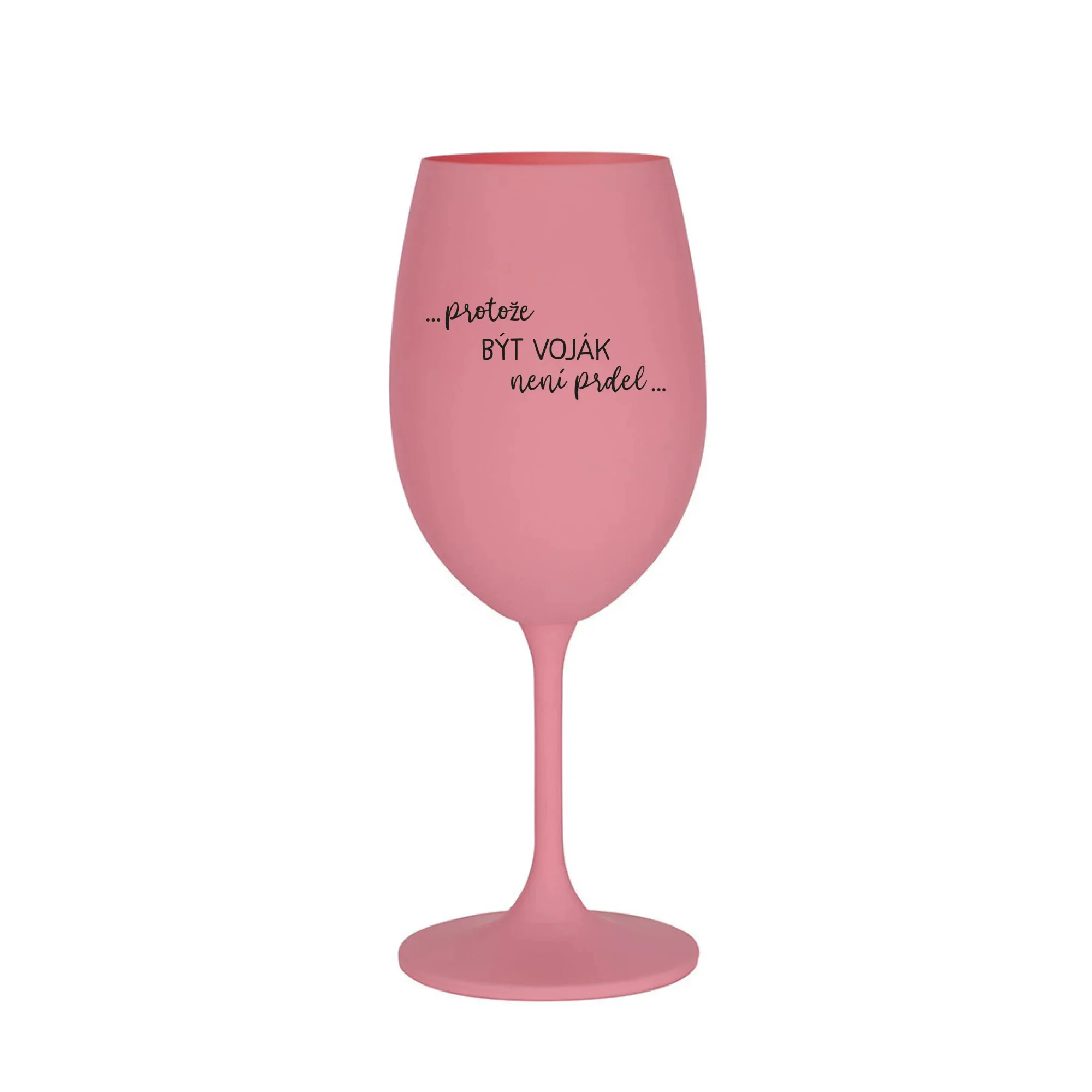 PROTOŽE BÝT VOJÁK NENÍ PRDEL - růžová sklenice na víno 350 ml