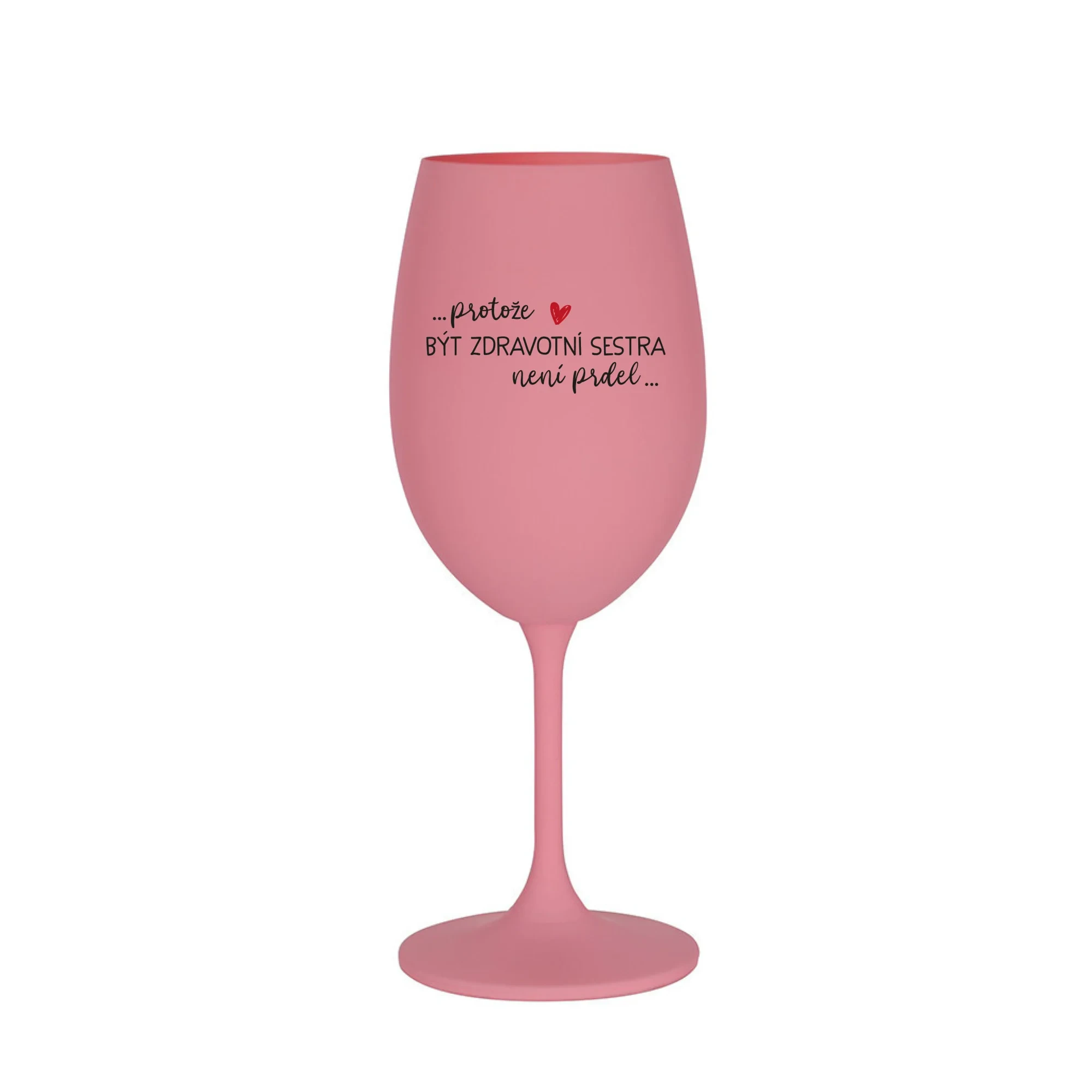 PROTOŽE BÝT ZDRAVOTNÍ SESTRA NENÍ PRDEL - růžová sklenice na víno 350 ml