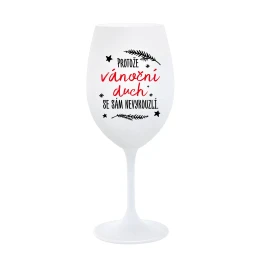 Vinná bílá sklenice s originálním motivem PROTOŽE VÁNOČNÍ DŮCH SE SÁM NEVYKOUZLÍ je krásným a osobitým dárkem, které ale využijete i Vy sami třeba ve chvílích, kdy si budete chtít zpříjemnit náročný den. Tyto originální vinné sklenice jsou totiž nejen pro výjimečné události, ale i pro běžné večery, které si chcete zpříjemnit sklenkou dobrého vína. Jistě proto potěší každého milovníka vína, i toho, kdo si umí svůj život vychutnat plnými doušky.