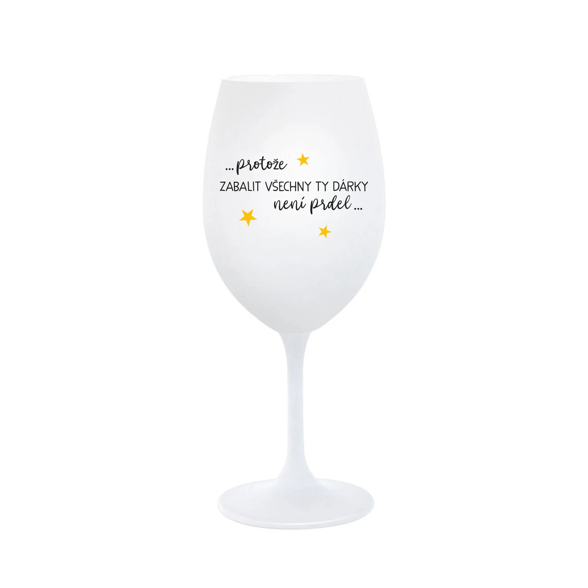 PROTOŽE ZABALIT DÁRKY NENÍ PRDEL - bílá sklenice na víno 350 ml