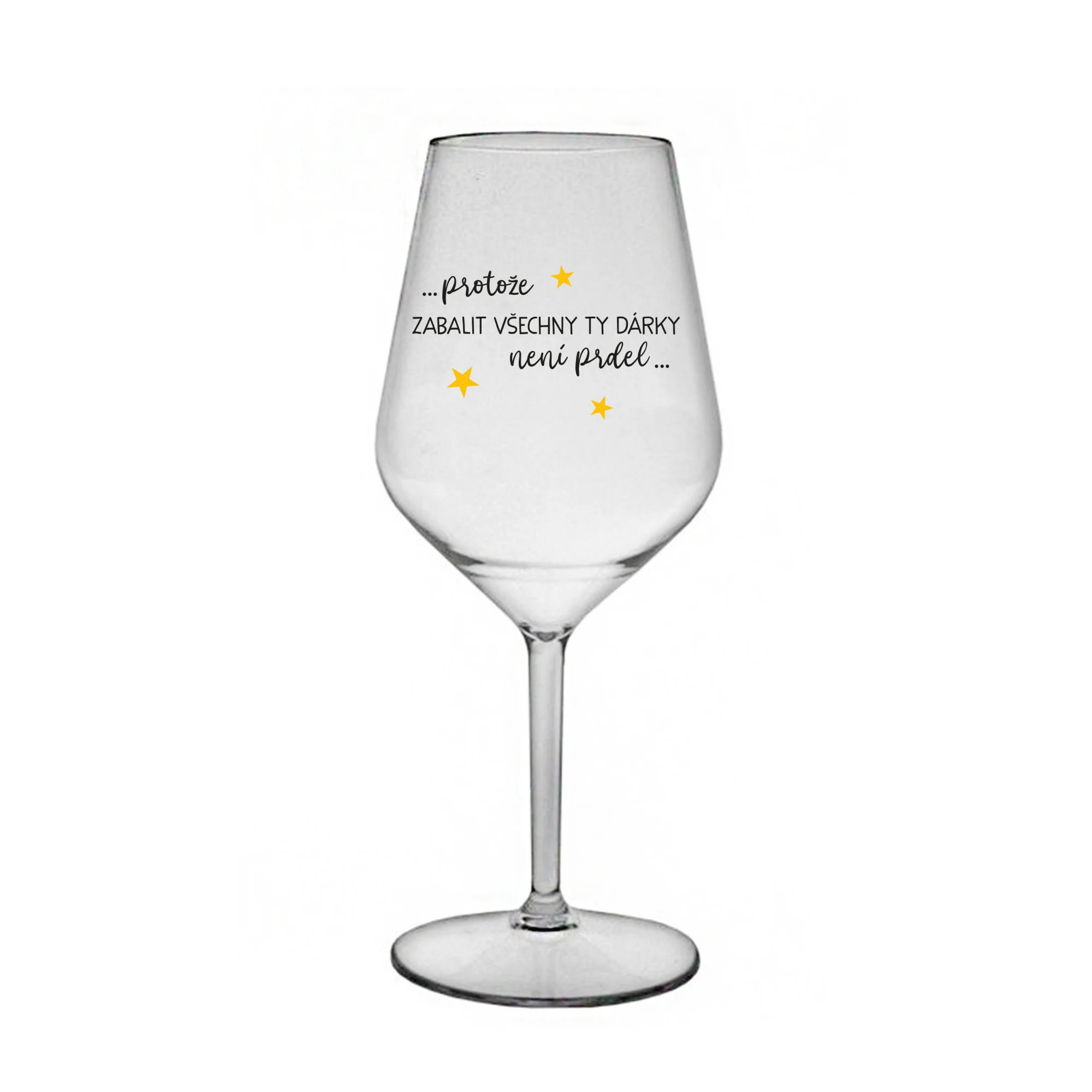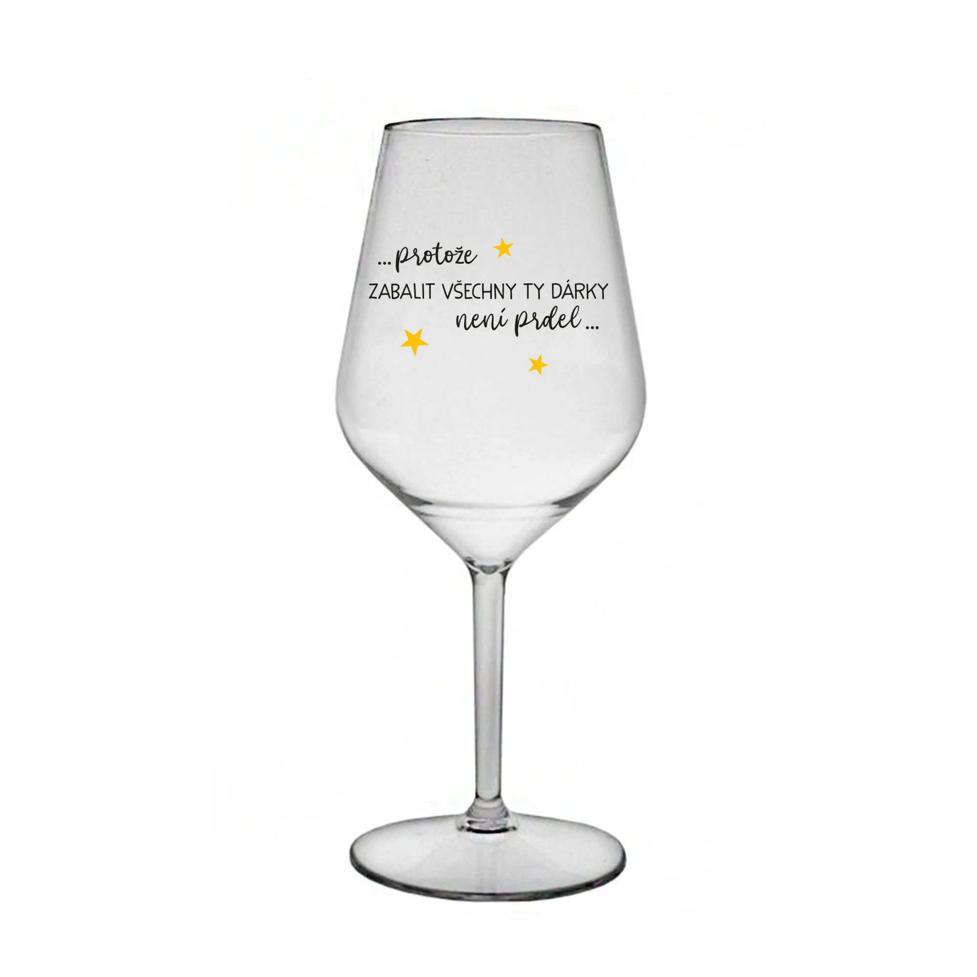 PROTOŽE ZABALIT DÁRKY NENÍ PRDEL - čirá nerozbitná sklenice na víno 470 ml