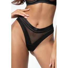 | Kalhotky brazilského střihu jsou navrženy tak, aby poskytovaly pohodlí po celý den. Tylové zakončení zadní části kalhotek je pohodlné a zároveň stylové a dodává kalhotkám nevšední půvab. Kalhotky mají navíc zabudovanou bavlněnou podšívku, která zajišťuje větší pohodlí během nošení. Černé šňůrky jsou neuvěřitelně svůdné a podtrhují ženskost. Jejich design je smyslný a přitahuje pozornost, což vašemu stylingu dodá sebevědomí a přitažlivost. |