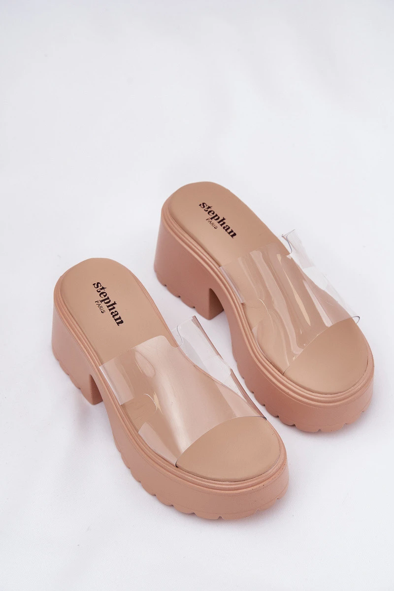 Průhledné Dámské Pantofle Na Platformě A Podpatku Béžové model 21687118 - Boto