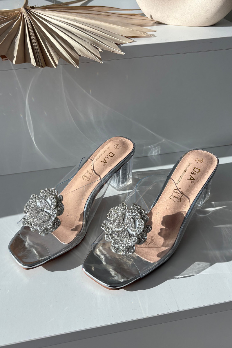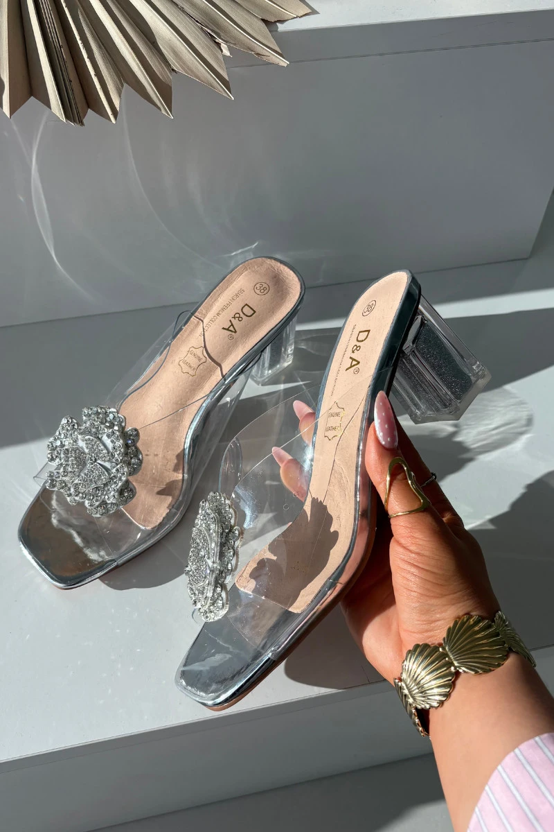 Průhledné nazouváky na podpatku s ozdobou D&A MR1037-20 stříbrné