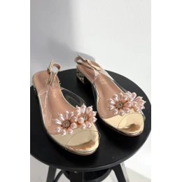 Průhledné sandály na nízkém podpatku s ozdobnými detaily D&A model 21900333 Zlaté - S.Barski