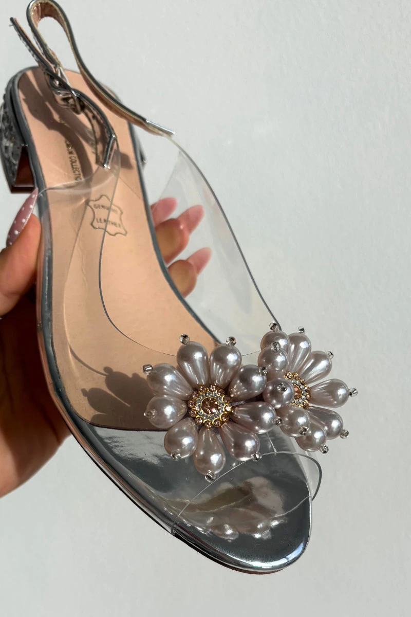 Průhledné sandály na nízkém podpatku s ozdobnými detaily D&A MR52-229 stříbrné