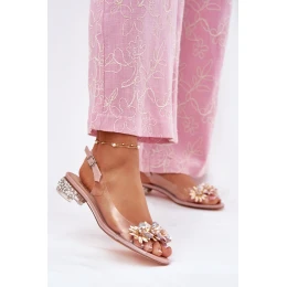 Průhledné sandály na nízkém podpatku se zdobením D&A model 21696639 růžové - S.Barski
