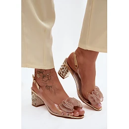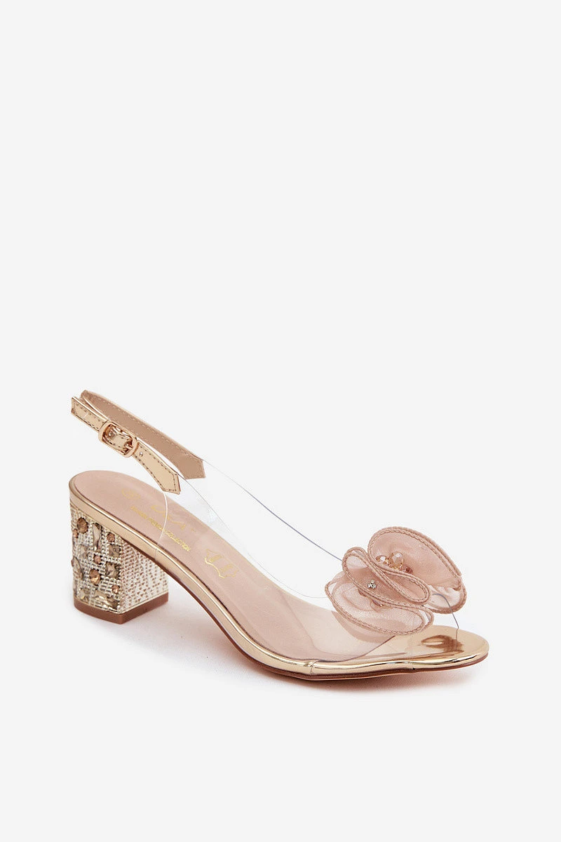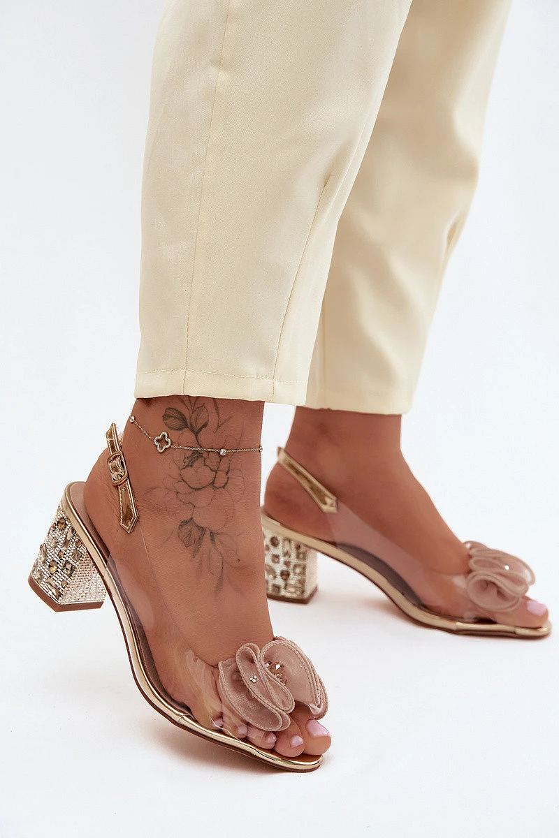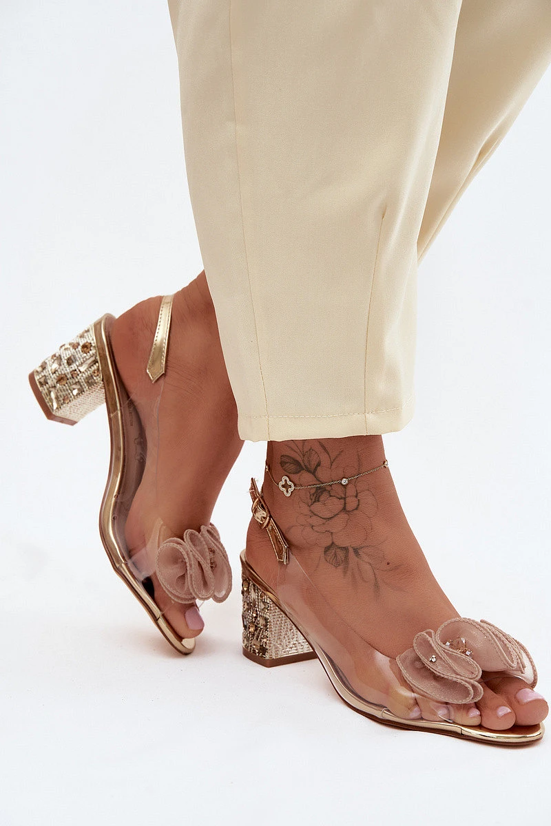Průhledné sandály na podpatku s krystaly D&A MR61-9012 Zlaté