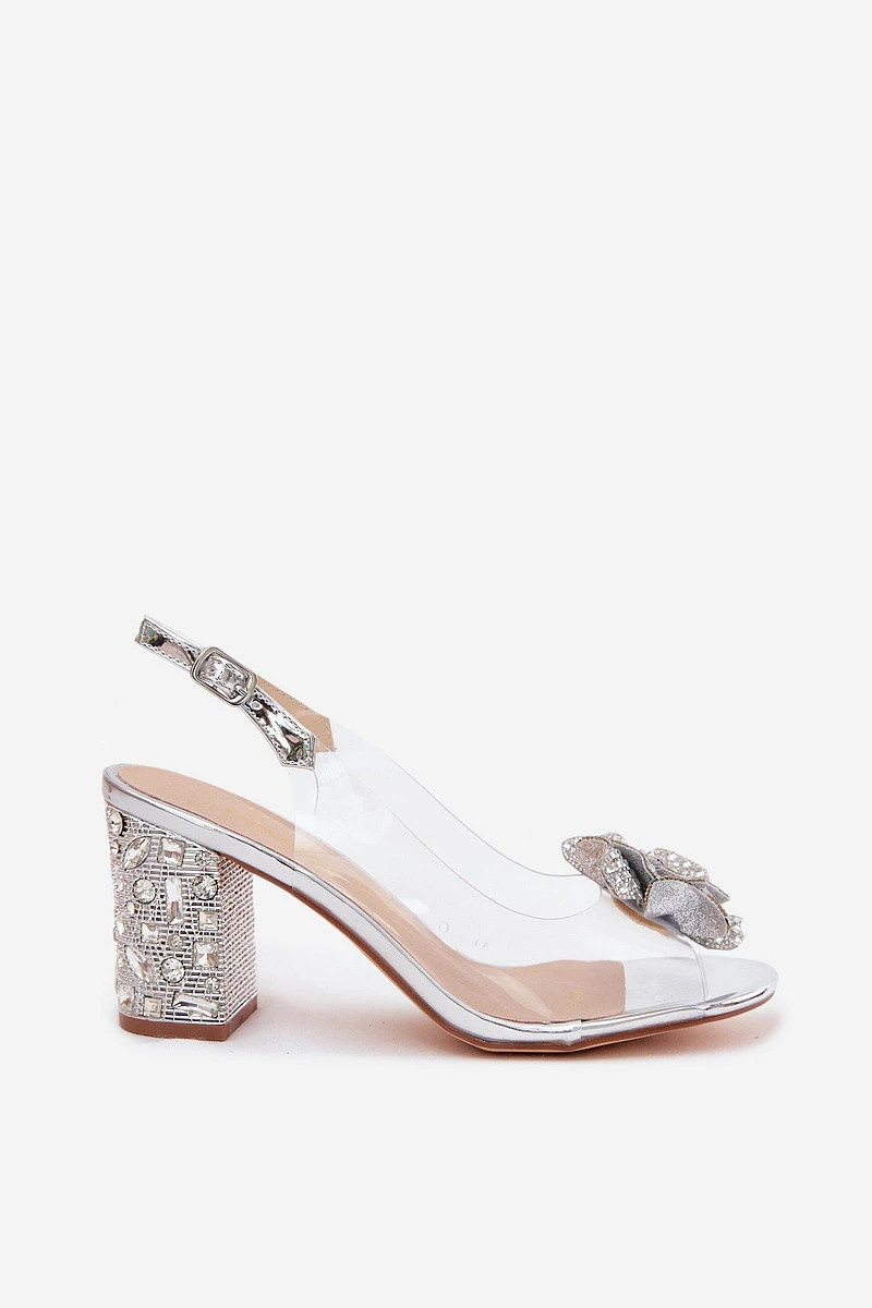 Průhledné Sandály na Podpatku S Krystaly D&A MR61-9013 Stříbrné