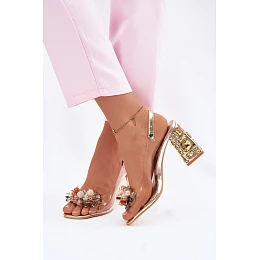 Průhledné sandály na podpatku s krystaly Vinceza 70121 zlaté