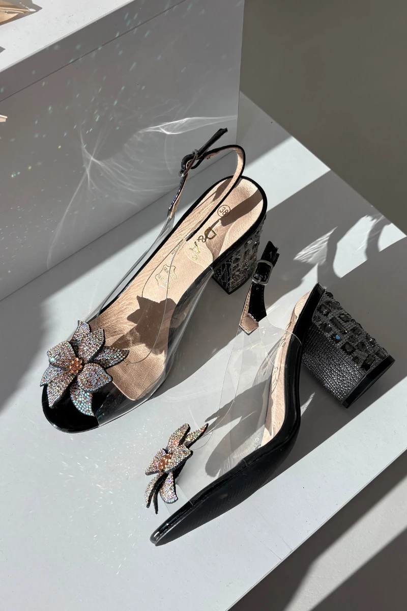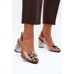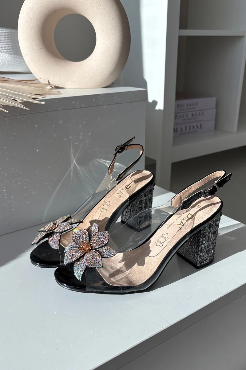 Průhledné sandály na podpatku s ozdobou model 21908408 černé - D&A