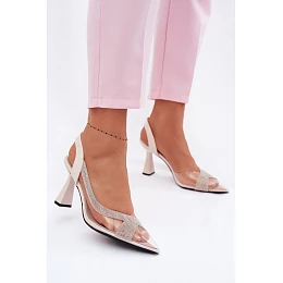 Průhledné sandály s kamínky na podpatku model 22095227 světle béžové - VINCEZA