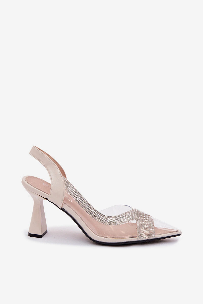 Průhledné sandály s kamínky na podpatku Vinceza 62282 světle béžové