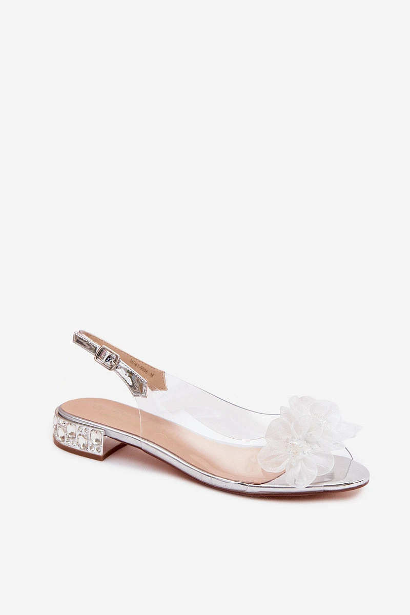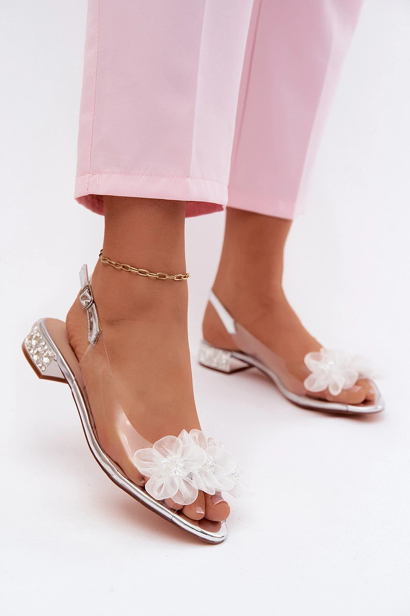 Průhledné sandály s krystaly a květinami stříbrné model 22133839 - D&A