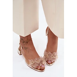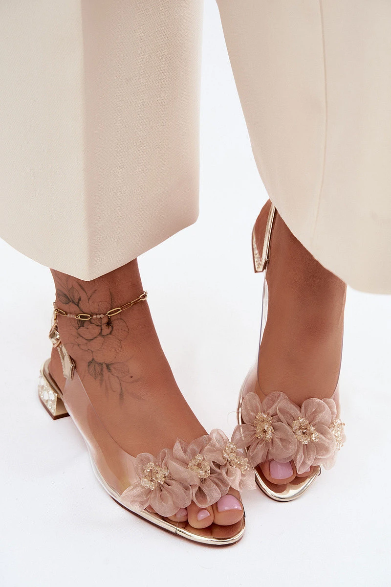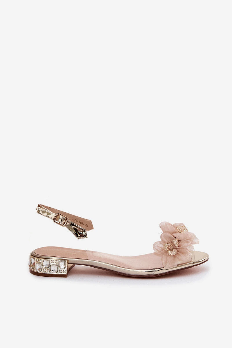 Průhledné sandály s krystaly a síťkovými květinami D&A MR61-9006 Zlaté