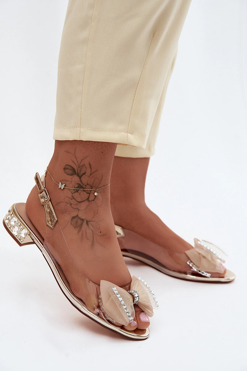 Průhledné Sandály s Krystaly a Síťovanou Mašlí D&A MR61-9004 Zlaté