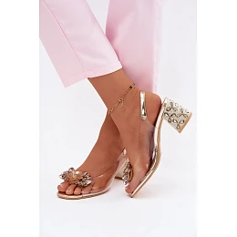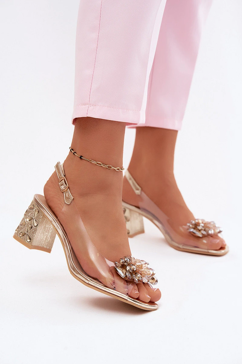 Průhledné dámské sandály jsou působivým návrhem určeným pro výjimečné příležitosti. Elegantní vzhled podtrhuje stabilní podpatek ve tvaru sloupu, ozdobený lesklými krystaly, které dodávají celku jemný lesk. Přední část upoutá dekorativní, šperkařskou aplikací, která modelu dodává výrazný charakter. Kožená vložka zajišťuje pohodlí při nošení, takže sandály jsou vhodné i na delší vycházky. Zapínání na sponu s nastavitelné páskem umožňuje přizpůsobení noze a zvyšuje stabilitu při chůzi. Je to skvělá volba k elegantním šatům a stylizacím na slavnosti, kde záleží na stylu a pohodlí. Při výběru velikosti se řiďte tabulkou velikostí.