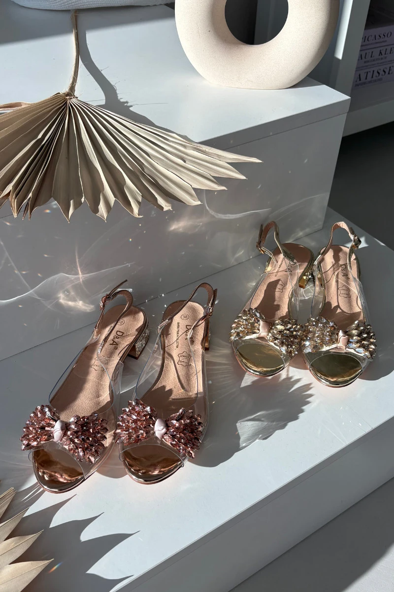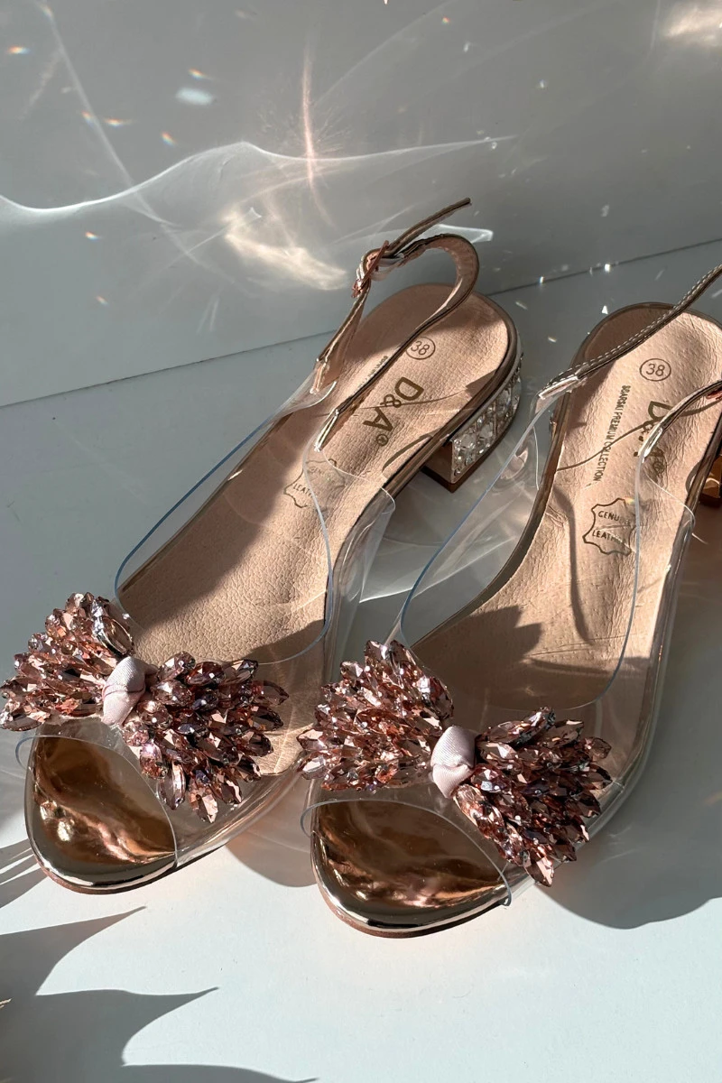 Průhledné sandály s mašlí D&A MR52-231 růžové zlato