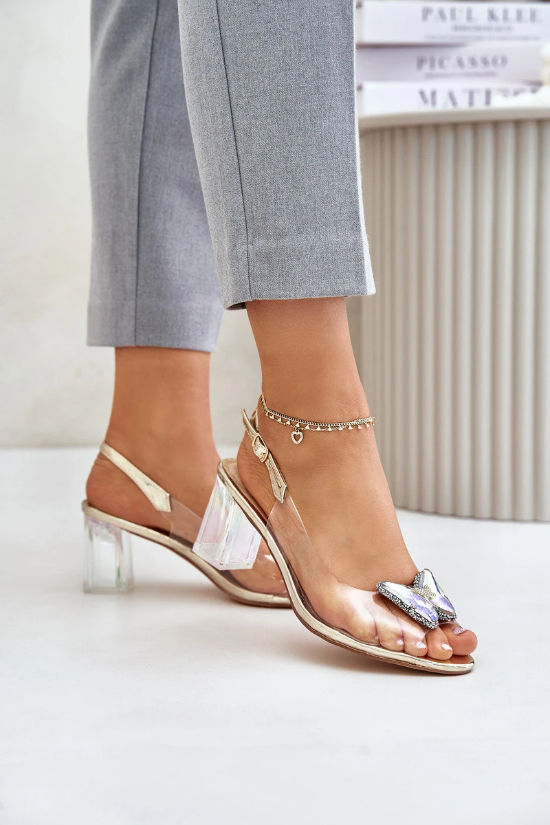 Průhledné Sandály S Motýlem Na Podpatku D&A MR42-326 Zlaté
