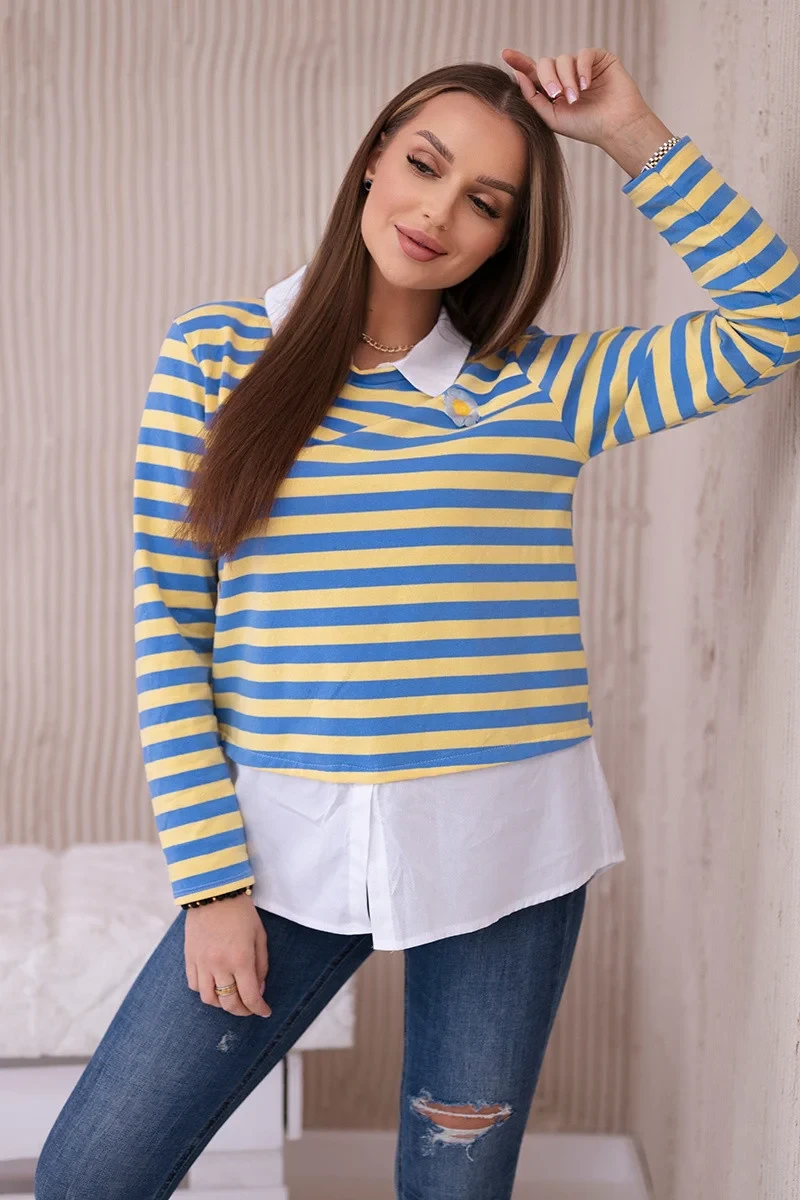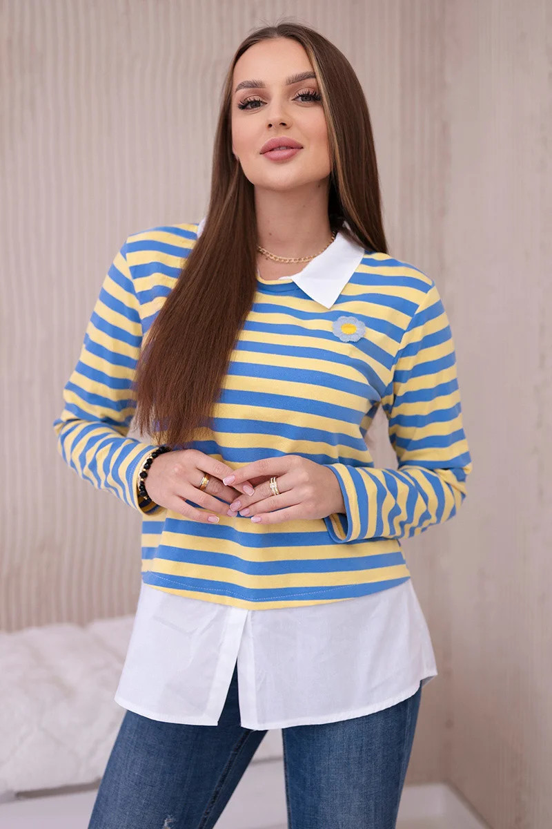 Pruhovaná bavlněná halenka s límečkem model 19449379 - K-Fashion