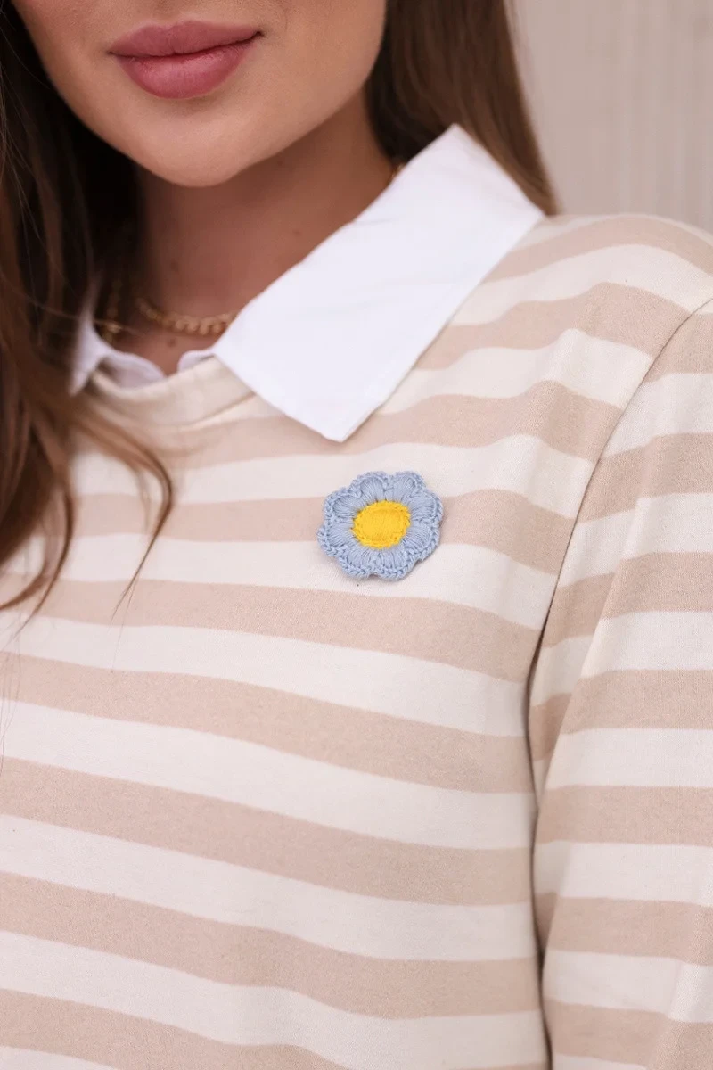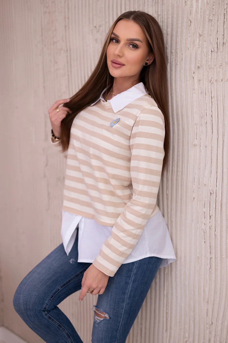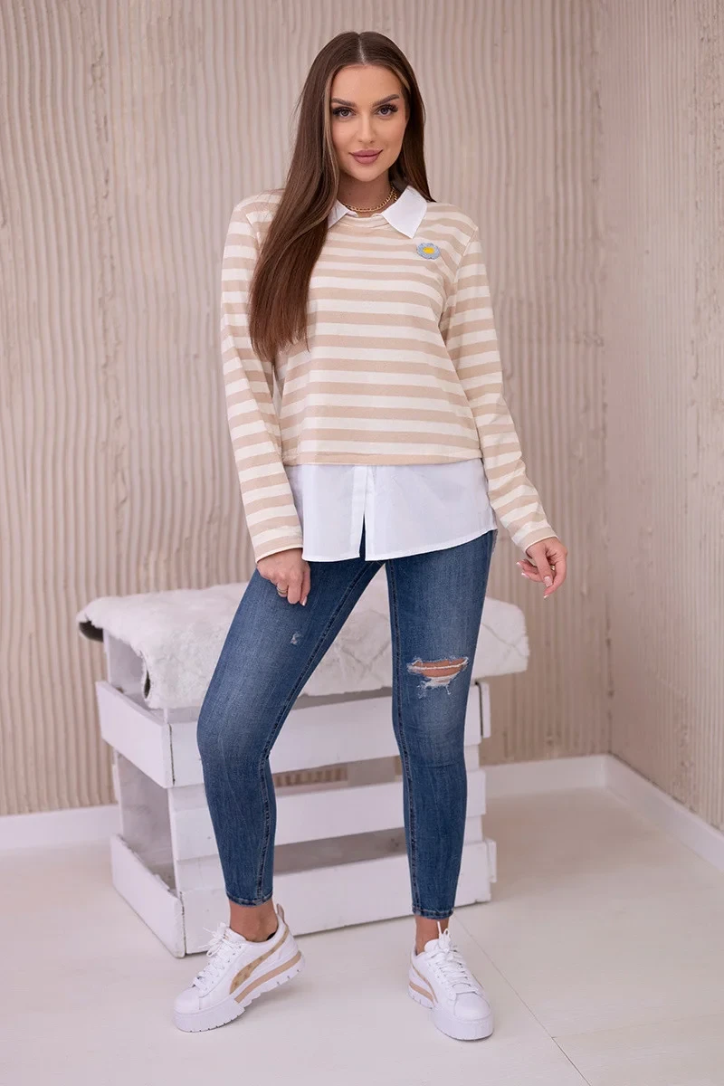 Pruhovaná bavlněná halenka s límečkem světle béžová+tmavě béžová