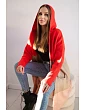 Pruhovaný svetr s kapucí béžová+červená+šedý