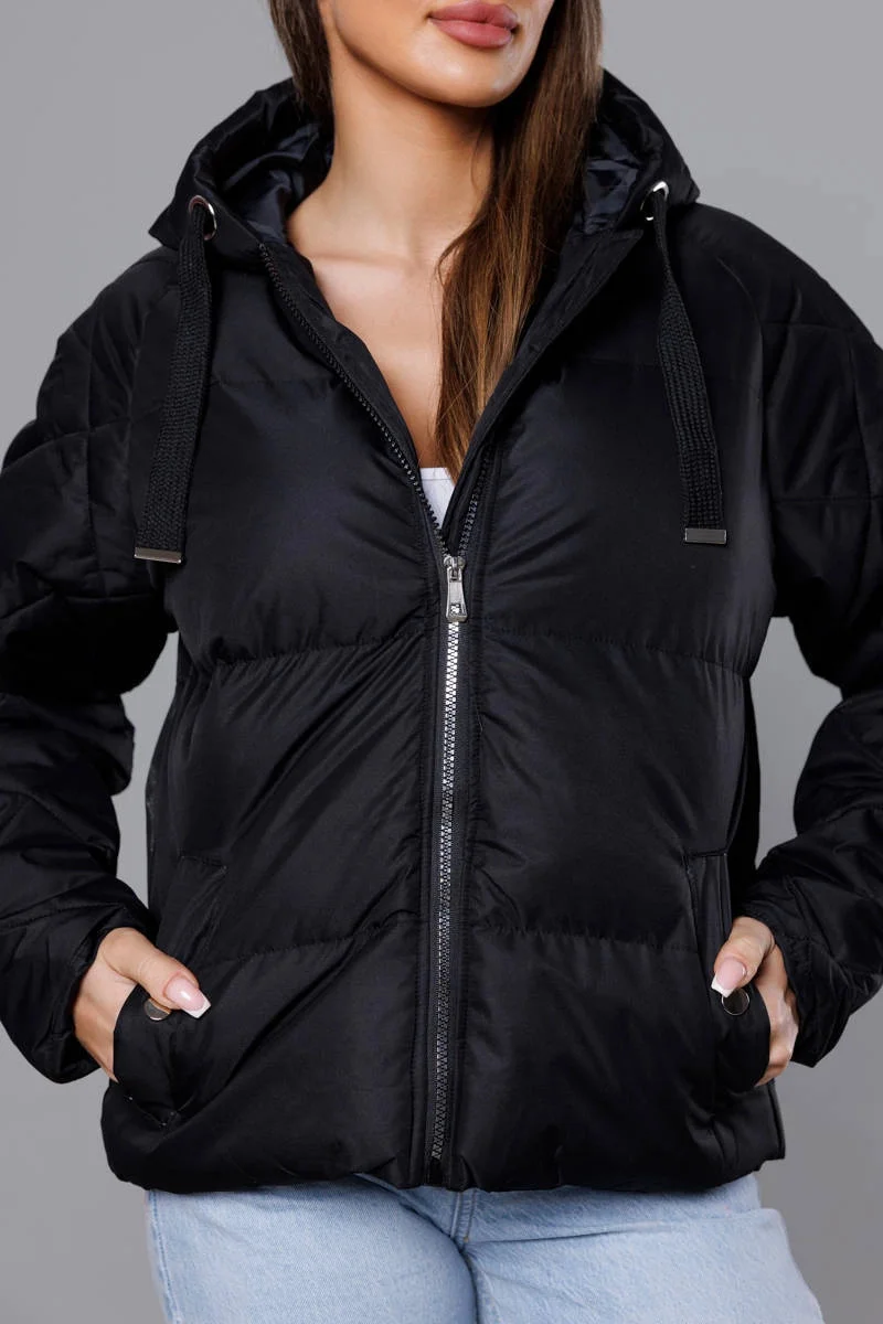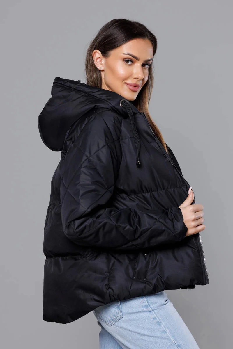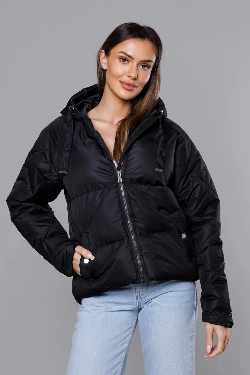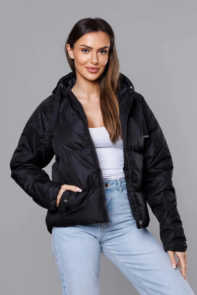 PRZEJŚCIOWA KURTKA Z PIKOWANYMI RĘKAWAMI CZARNA (5M3113-392)