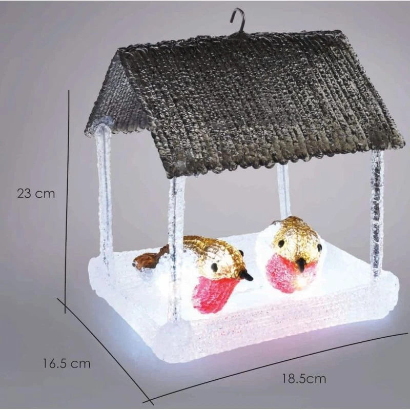 Hledáte originální dekoraci pro svou terasu, balkon nebo dům!LED DEKORACE PTAČÍ DOMEK 185X165X230MM ŠEDÁ stříška je okouzlující dekorace, která dokonale kopíruje stylový vzhled skutečného ptačího krmítka, zatímco měkké LED světlo vytváří útulnou atmosféru.