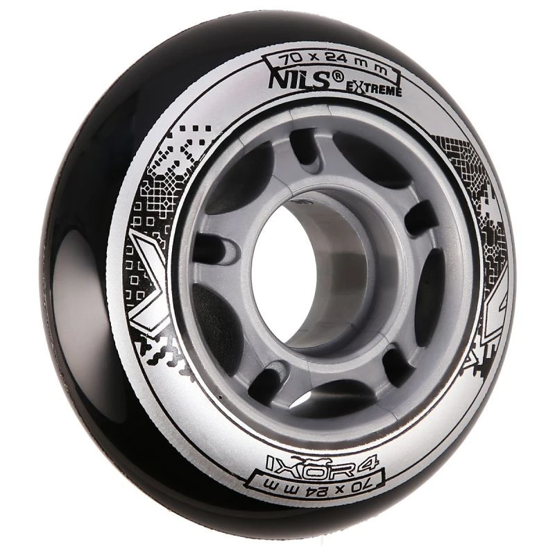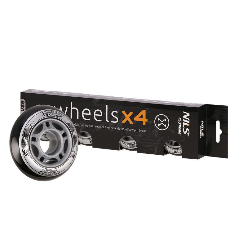 Kolečka BLACK NILS EXTREME PU jsou vyrobena z polyuretanu. Nejdůležitějšími vlastnostmi koleček jsou tvrdost a průměr. Tvrdost koleček určuje jak komfort jízdy, tak přilnavost k podkladu. Kolečka PU-82A dobře tlumí nárazy a výborně se přizpůsobí jakémukoli povrchu. Průměr koleček má přímý vliv na rychlost jízdy. Kolečka s větším průměrem umožňují vyšší rychlost, ale nezaručují stejnou manévrovatelnost jako kolečka s menším průměrem.