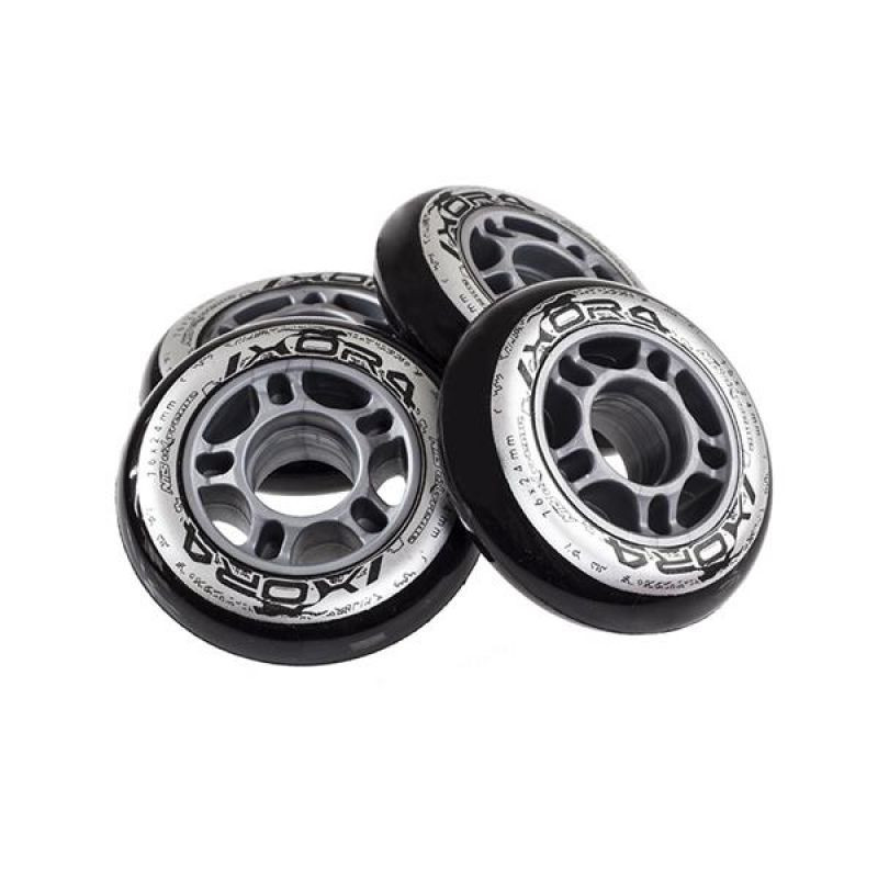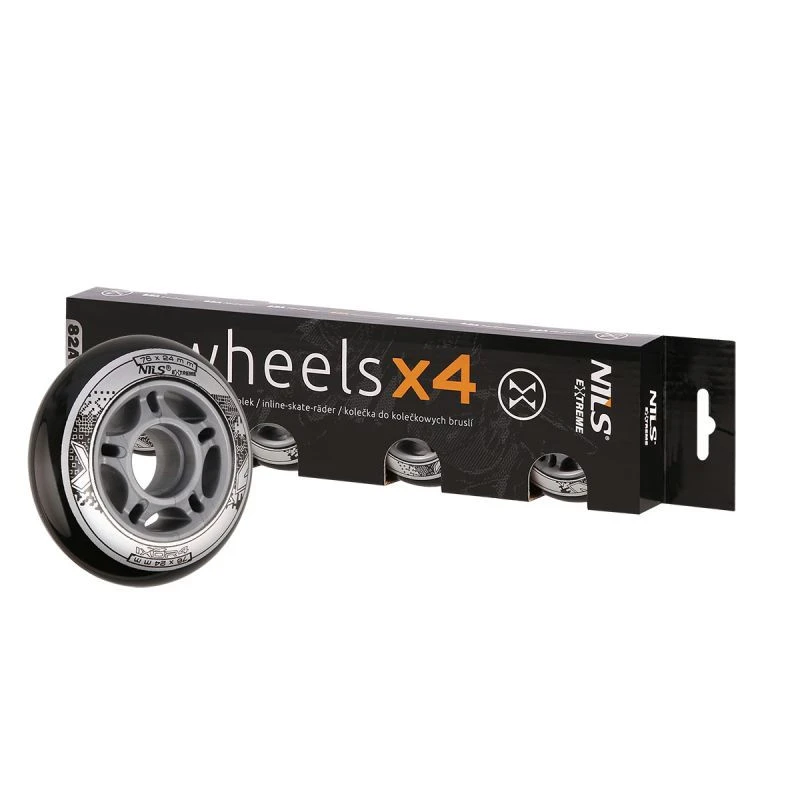 Kolečka BLACK NILS EXTREME PU jsou vyrobena z polyuretanu. Nejdůležitějšími vlastnostmi koleček jsou tvrdost a průměr. Tvrdost koleček určuje jak komfort jízdy, tak přilnavost k podkladu. Kolečka PU-82A dobře tlumí nárazy a výborně se přizpůsobí jakémukoli povrchu. Průměr koleček má přímý vliv na rychlost jízdy. Kolečka s větším průměrem umožňují vyšší rychlost, ale nenabízejí takovou manévrovatelnost jako kolečka s menším průměrem.