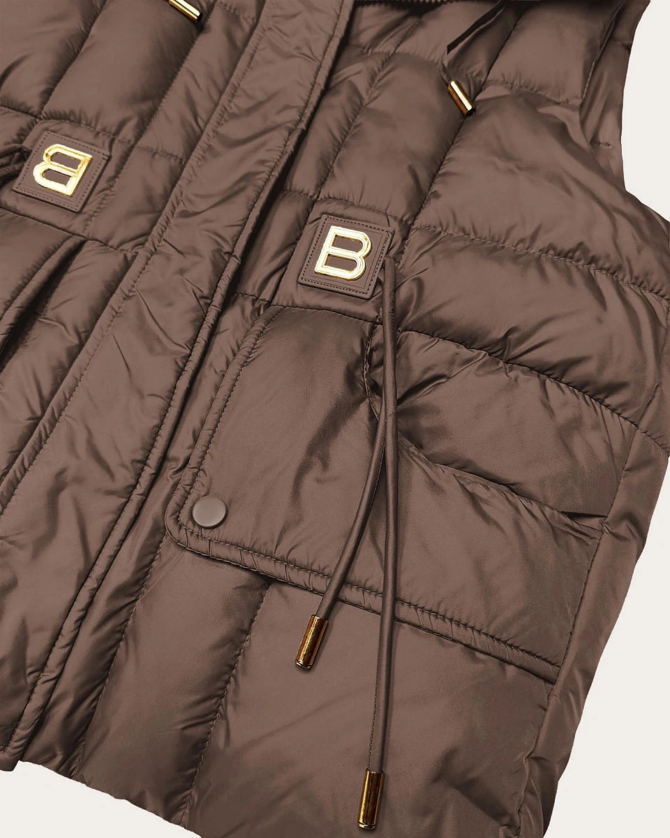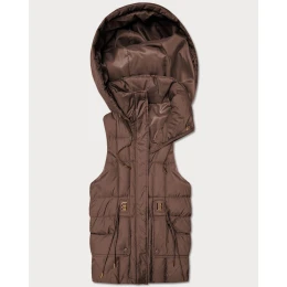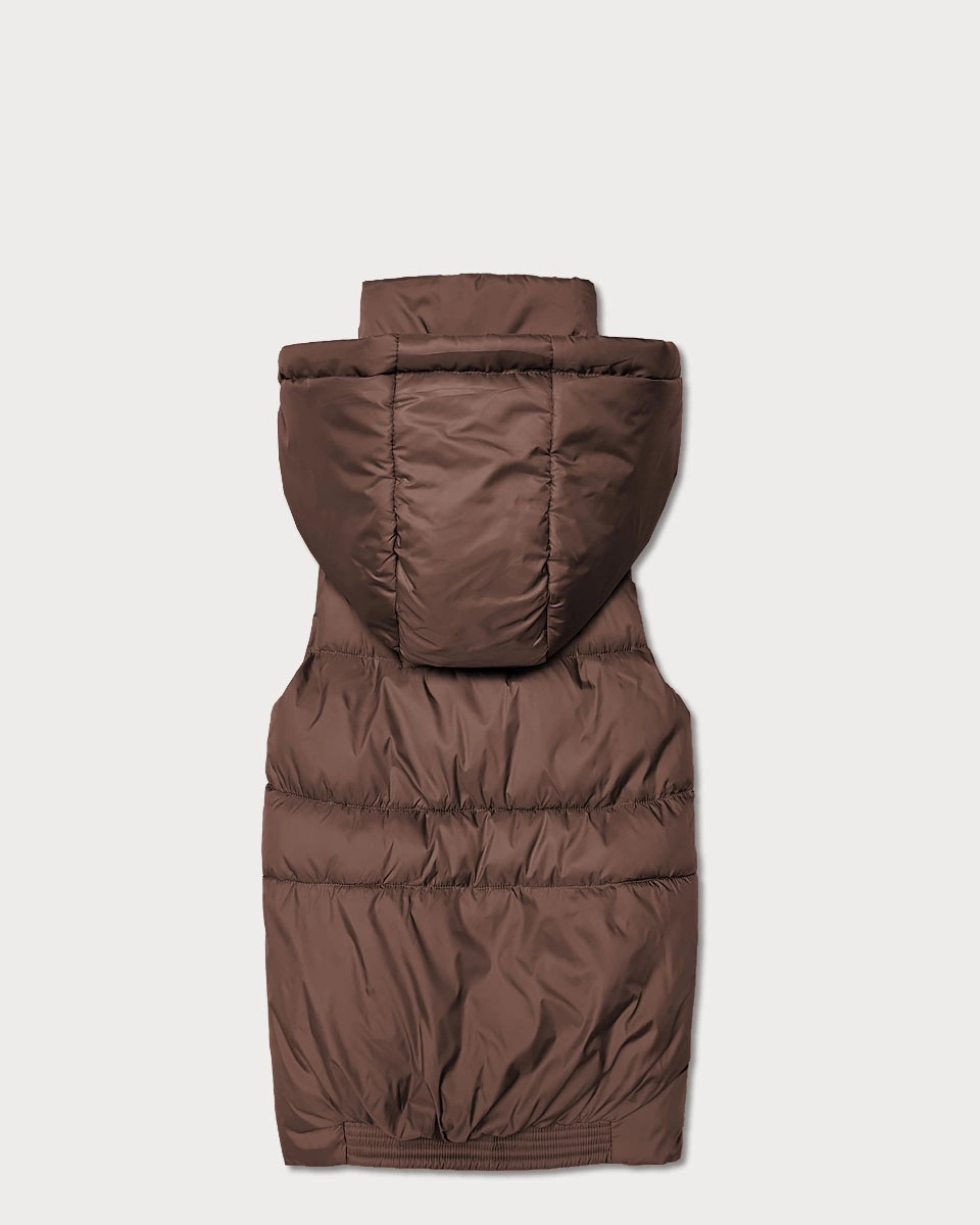 Puchowy bezrękawnik damski z kapturem Goodlookin czekoladowy (B8600-14)