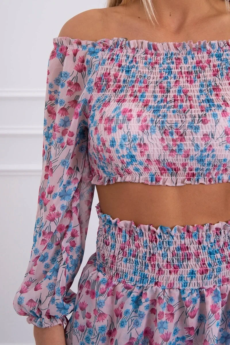 Představujeme vám sadu halenky a sukně. Halenka a květinová sukně. Sukně s volánky. Sada je vyrobena z vysoce kvalitního materiálu. Velikost je univerzální a vyhovuje dámám, které nosí velikost S, M nebo L.