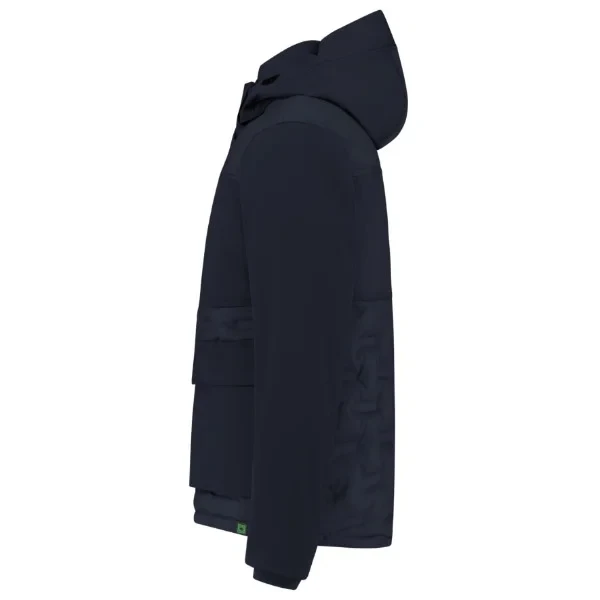 recyklovaný polyester větru odolný a vodoodpudivý materiál certifikace dle normy ČSN EN 14058 (832766) moderní nadýchaný vzhled rovný střih s bočními švy odnímatelná kapuce průstřih kapuce pro lepší rozhled kapuce a dolní lem na stažení elastickou šňůrkou stojáček uvnitř z žebrového úpletu reflexní páska na kapuci celopropínací zip s klopou, krytkou brady a zapínáním na druky dvojité přední kapsy, horní měchová s klopou a boční na zip softshelový materiál na levé straně pro možnost potisku náprsní kapsa na zip, uvnitř s poutkem na ID 2 vnitřní kapsy kapsy na zip YYK vstup pro branding dolní lem z žebrového úpletu certifikace dle norem EN 14058:2017 (třída 3-2-x-x), EN ISO 13688:2013 Tricorp číslo produktu: 402711