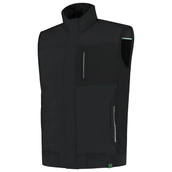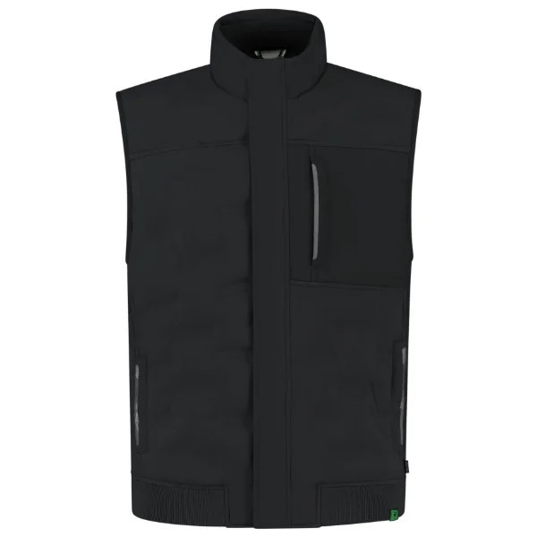 recyklovaný polyester větru odolný a vodoodpudivý materiál moderní nadýchaný vzhled reflexní potisk na kapsách rovný střih s bočními švy celopropínací zip s klopou, krytkou brady a zapínáním na druky stojáček lemování průramků elastickým proužkem softshelový materiál na levé straně pro možnost potisku náprsní kapsa na zip, uvnitř s poutkem na ID lištové kapsy na zip kapsy na zip YYK vstup pro branding dolní lem z žebrového úpletu Tricorp číslo produktu: 402710