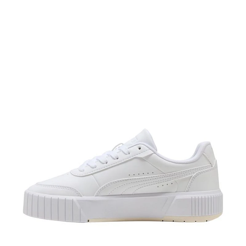 Dámská obuv Puma Carina Mia Topcat 406064 02. Dámská obuv Puma pro každodenní nošení. Svršek ze syntetické kůže. Klasické šněrování. Textilní podšívka. Stélka Softfoam+. Další perforace na přední straně a bocích. Podrážka se zvýšenou platformou. Doplněná gumovým vzorkem.