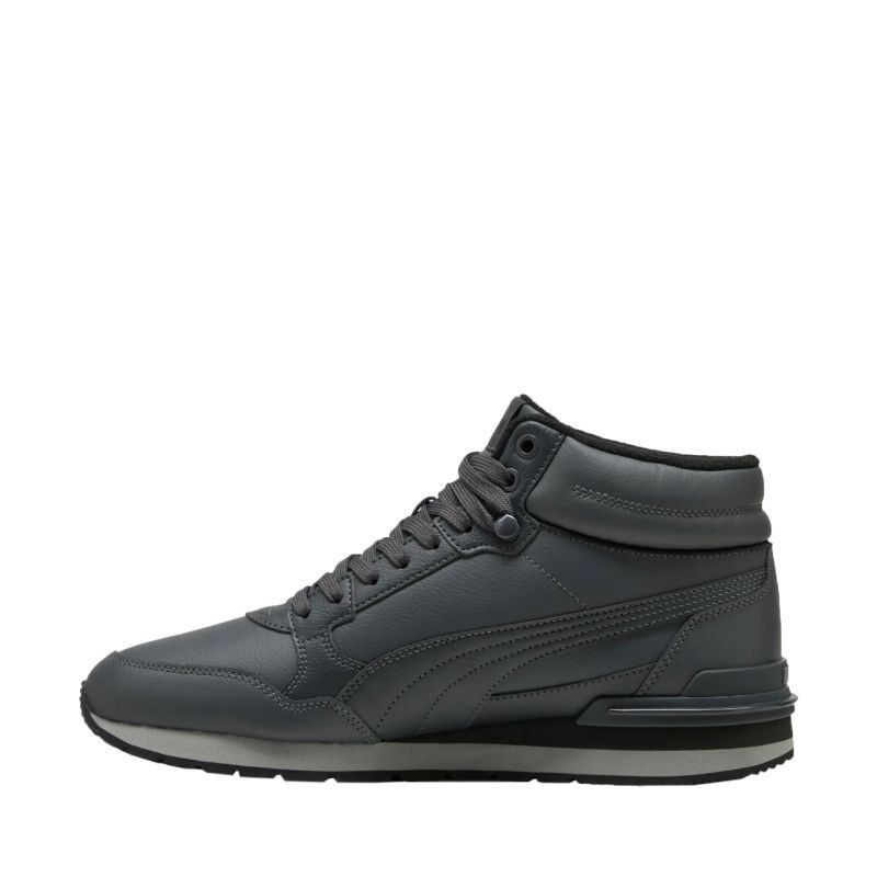 Boty Puma ST Runner v4 Mid grey 402893 03 Puma jsou ideální pro přechodné a zimní nošení. Svršek z ekokůže. Tradiční šněrování se zapínáním na suchý zip. Středně vysoký profil stabilizuje kotník. Textilní vnitřek s měkkou fleecovou podšívkou. Stélka SoftFoam+ s antimikrobiálními vlastnostmi kopíruje tvar chodidla. Odolná podrážka získává přilnavý dezén. Obuv vyrobena z nejméně 20 % z recyklovaných materiálů.