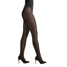 Punčocháče zimní 1219 Pryma black GABRIELLA - černá barva - z elastických vláken s přídavkem polyamidového hedvábí - s rostlinným vzorem - bez viditelné sedací části - bavlněný klín - ploché švy - 60 DEN