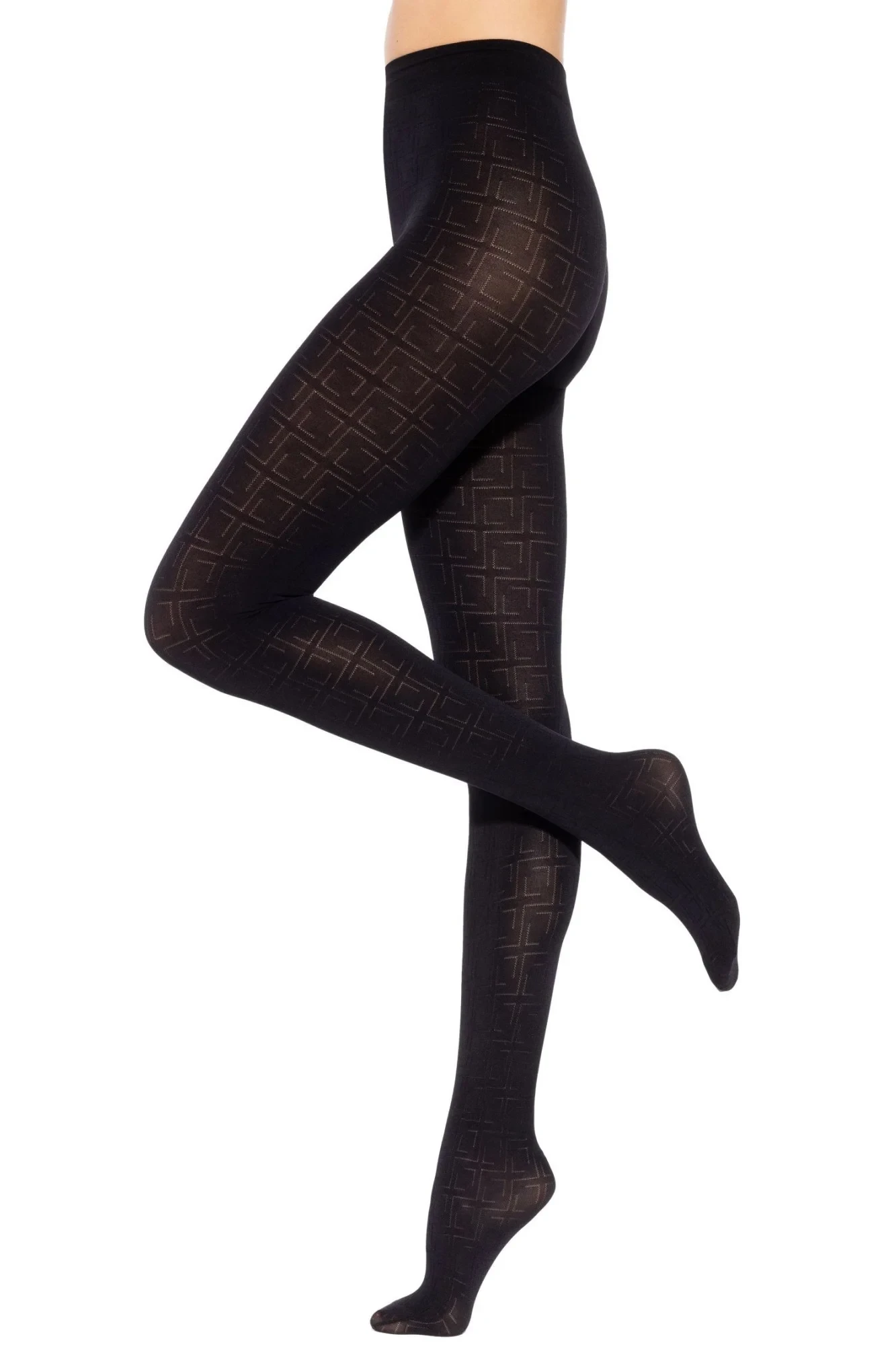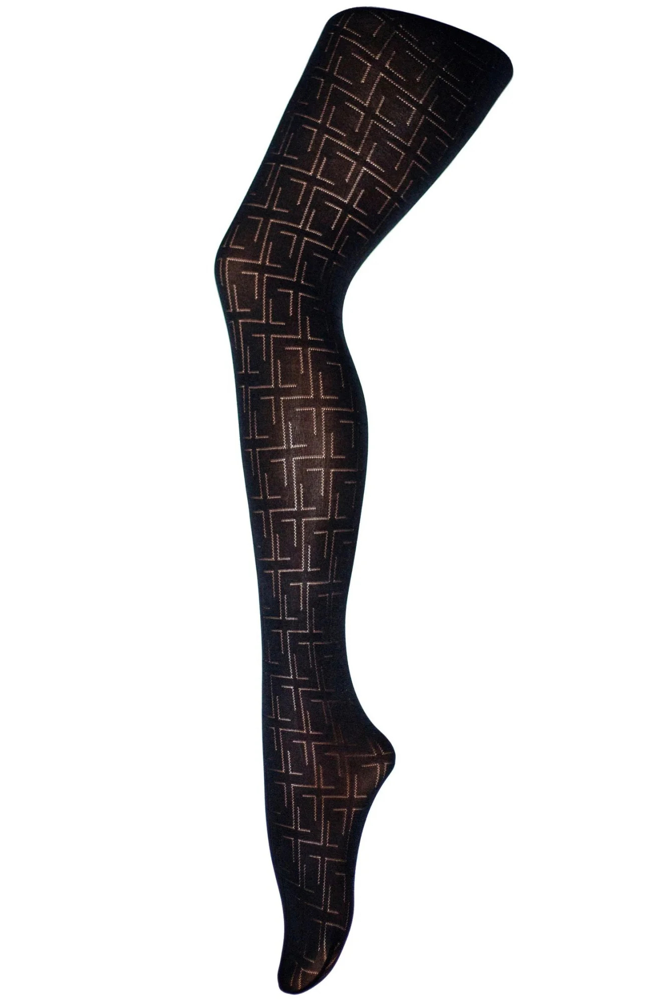 Punčocháče zimní 151 Loretta GATTA - černá barva - z elastanové příze - vzorované - mat - 50 DEN