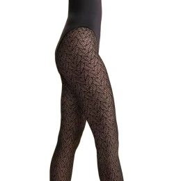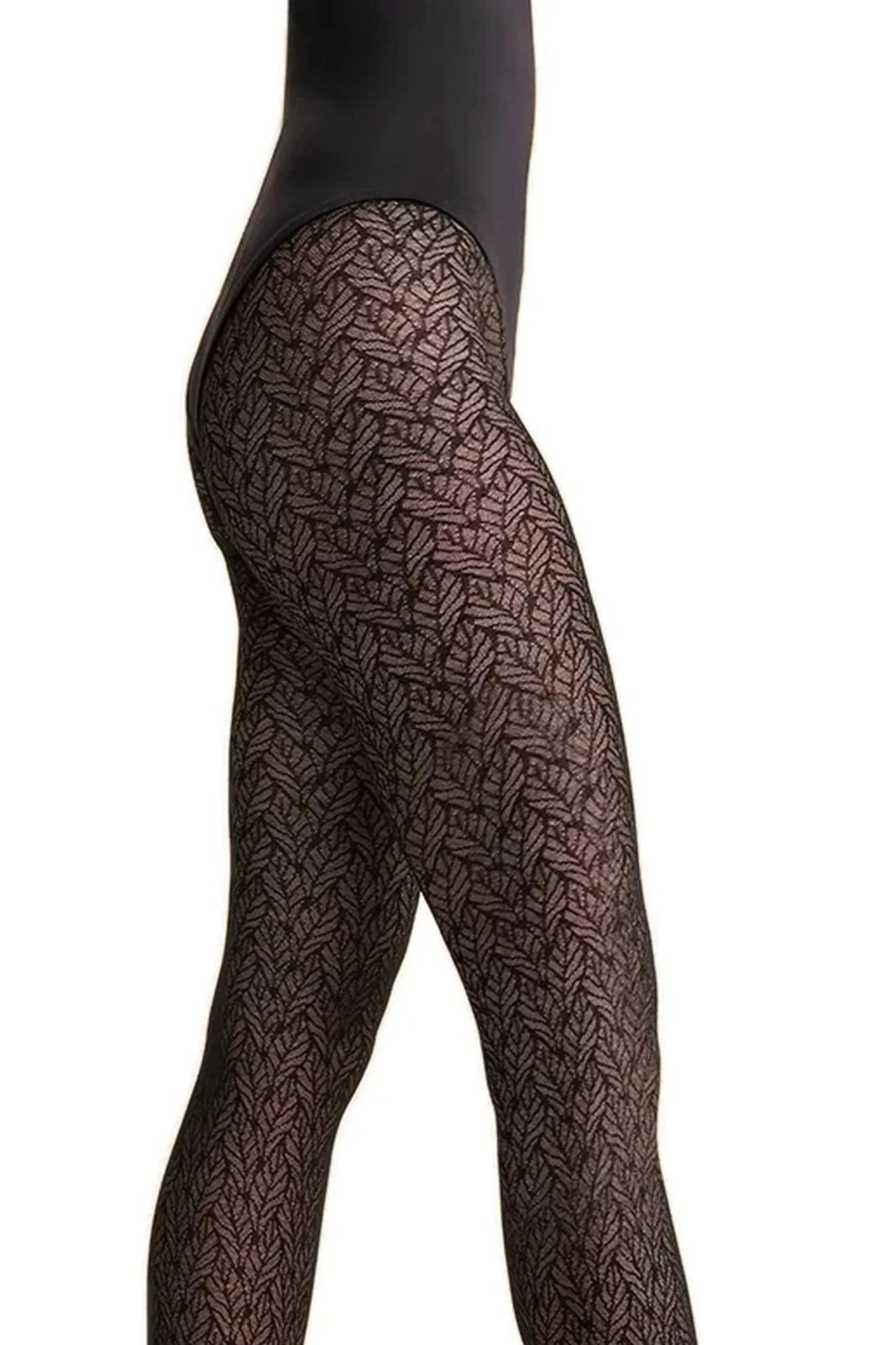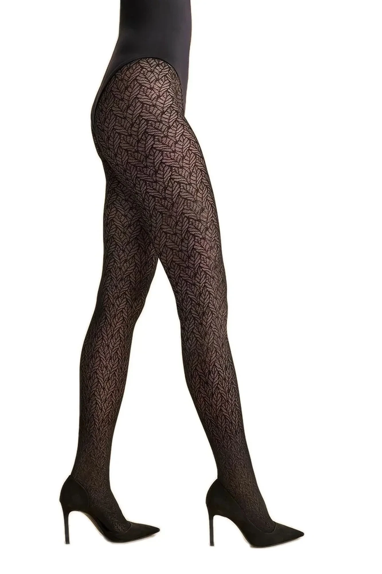 Punčocháče zimní 1219 Pryma black GABRIELLA - černá barva - z elastických vláken s přídavkem polyamidového hedvábí - s rostlinným vzorem - bez viditelné sedací části - bavlněný klín - ploché švy - 60 DEN