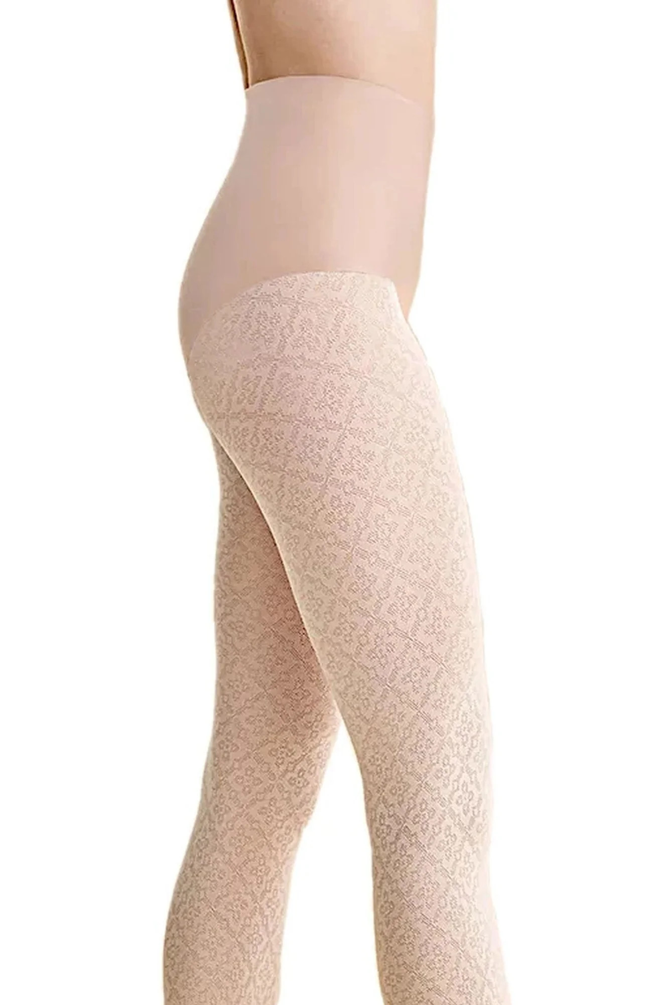 Punčocháče zimní 1218 Dafne cream GABRIELLA - krémová barva - z elastických vláken s přídavkem polyamidového hedvábí - se vzorem - bez viditelné sedací části - bavlněný klín - ploché švy - 60 DEN
