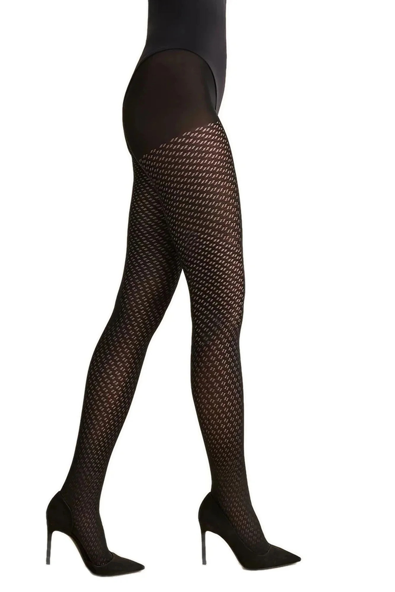 Punčocháče zimní 1215 Nadia black plus GABRIELLA - černá barva - z elastických vláken s přídavkem polyamidového hedvábí - s geometrickým vzorem - bez viditelné sedací části - bavlněný klín - ploché švy - 80 DEN